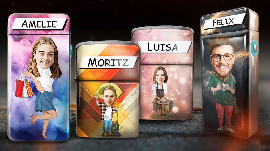 Nuestros encendedores personalizados son regalos originales que impresionarán por su creatividad y toque personal. Un accesorio divertido, perfecto para amigos, compañeros o familiares - diseñado de manera individual y pensado hasta el último detalle.