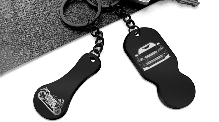 Bestill din elegante shopping chip nøkkelring med gravering på bare ett minutt!