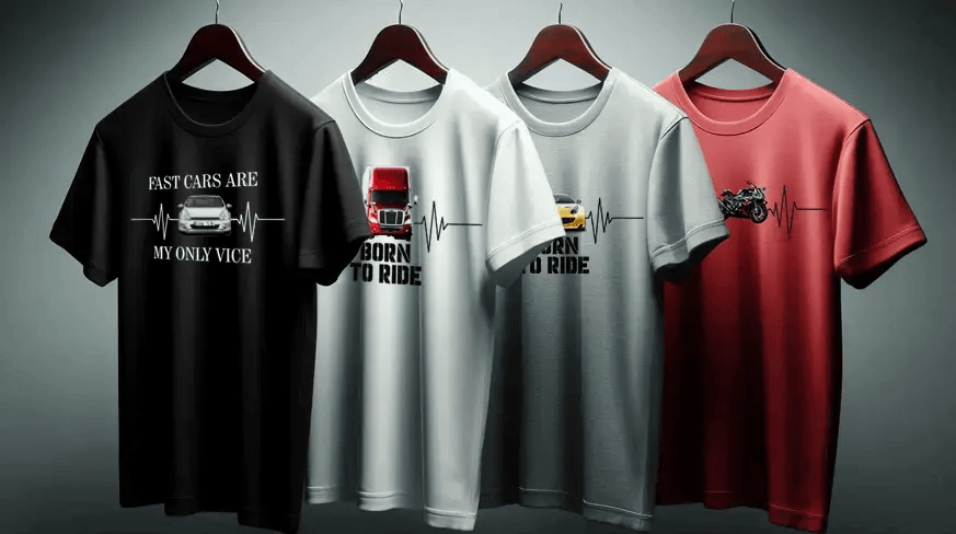 En T-skjorte med motorsykkelmotiv, Cars T-skjorte eller T-skjorte for lastebilsjåfører - designet helt etter dine ønsker!